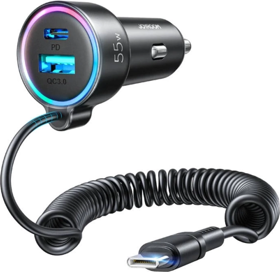 Încărcător auto Joyroom vă permite să încărcați până la 3 dispozitive în același timp datorită portului USB-C, portului USB-A și cablului USB-C încorporat. Fără așteptări lungi – încărcați dispozitivele de până la 5 ori mai repede decât cu un încărcător auto obișnuit.