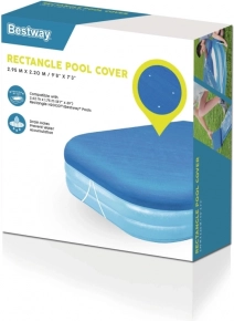 Prelată de protecție Bestway durabilă pentru piscine gonflabile dreptunghiulare cu dimensiunile 262 × 175 × 50,5 cm, care protejează în mod fiabil apa de insecte, frunze, păsări și ploi ușoare. Datorită orificiilor de scurgere, apa în exces nu stagnează la suprafață, șnururile de fixare previn smulgerea de către vânt, iar prelata oferă suplimentar izolație termică și siguranță sporită pentru copii.