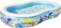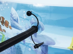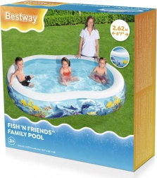 Piscina gonflabilă BESTWAY Fish 'n Friends transformă grădina într-un colorat regat subacvatic. Forma ovală oferă suficient spațiu pentru joacă și stropit, în timp ce pereții laterali largi asigură confort și stabilitate. PVC/vinilul de calitate rezistă bine utilizării obișnuite în zilele fierbinți de vară.