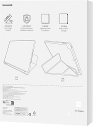 Capacul pliat integrat funcționează ca un suport stabil cu mai multe unghiuri de înclinare – ideal pentru vizionarea videoclipurilor, desen și scriere. Funcția de trezire și hibernare automată economisește energie: la deschiderea husei, dispozitivul se trezește, iar la închidere intră în repaus. Detaliile bine gândite, precum orificiile pentru evacuarea căldurii și suportul pentru Apple Pencil I/II sau Baseus Stylus Pens, sporesc practicitatea la muncă și divertisment.