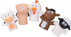 Pregătiți-vă propriul mini-teatru cu cinci animăluțe simpatice pentru deget. Păpușile de deget din cauciuc moale se pun confortabil pe degetele copiilor și îi ajută să-și dezvolte imaginația, narațiunea și comunicarea. Sunt grozave pentru inventarea de povești, de exemplu din mediul fermei.