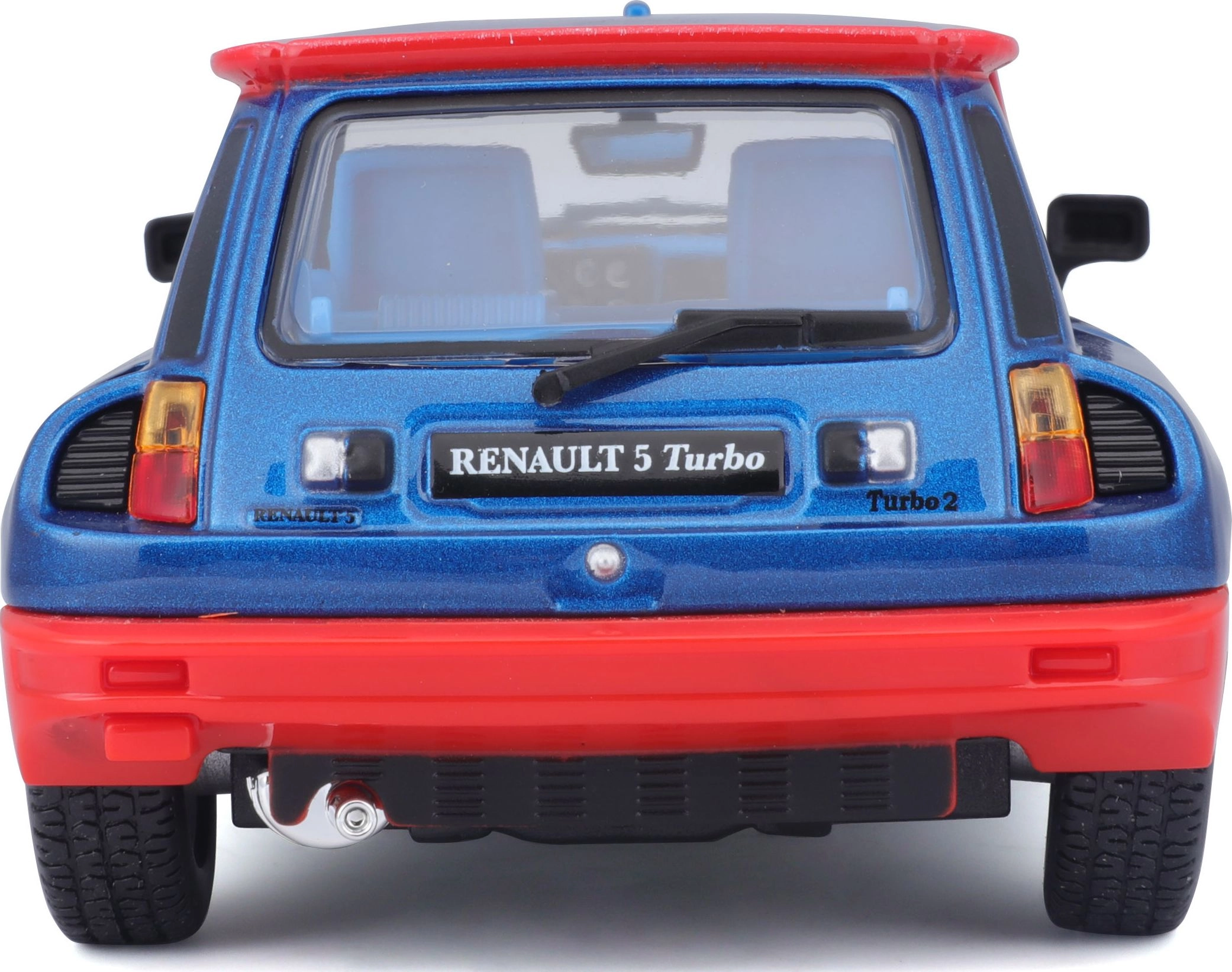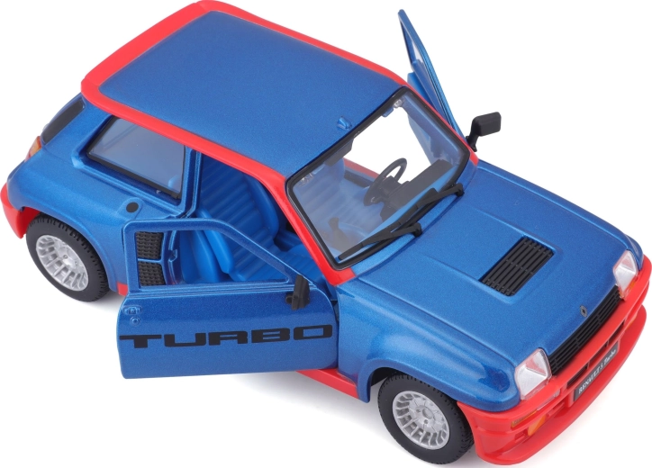 Modelul Bburago Renault 5 Turbo aduce o replică fidelă a legendarului automobil, cu aripi evazate iconice și elemente sportive. În culoare albastră cu accente roșii și inscripția proeminentă TURBO, arată ca un veritabil automobil de competiție. Ușile care se deschid dezvăluie un interior realist cu scaune și volan.