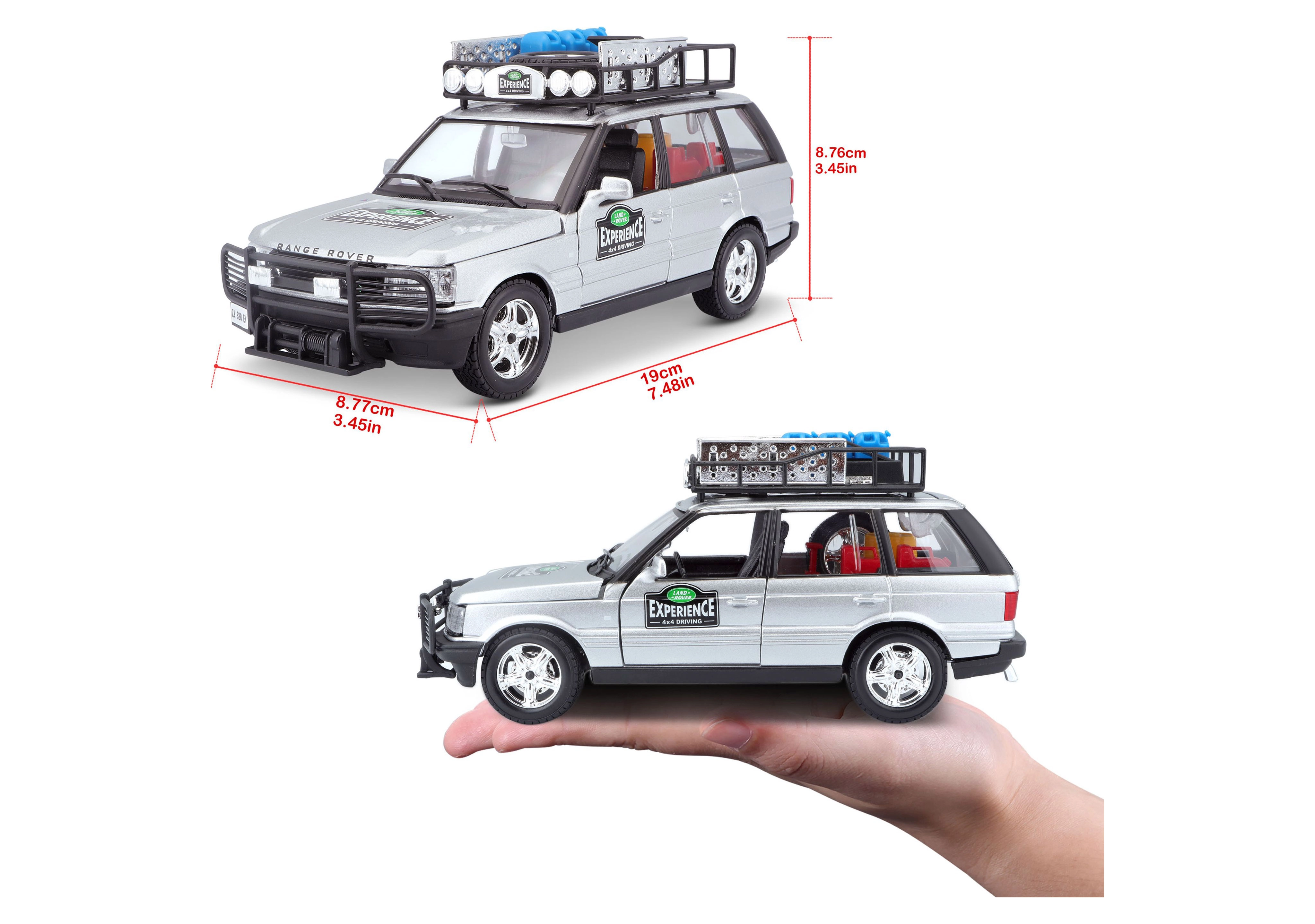 Acest model RANGE ROVER realizat cu precizie, la scara 1:24, aduce detalii autentice care vor încânta orice pasionat de vehicule off-road. Caroseria argintie, completată de portbagajul de plafon cu accesorii, bara frontală de protecție și autocolantele realiste, creează un aspect atractiv pentru joacă sau expunere.