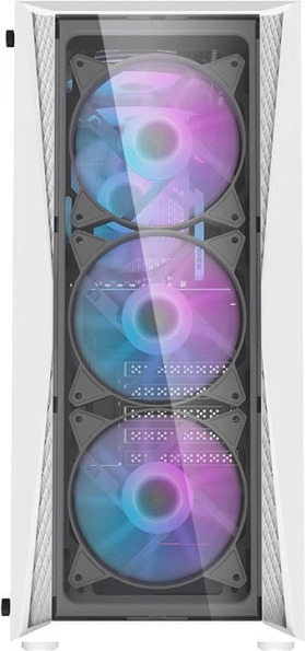 Panoul lateral și cel frontal din sticlă securizată evidențiază componentele și efectele ARGB. Carcasa albă, elegantă, se potrivește perfect atât sistemelor de gaming, cât și celor office.