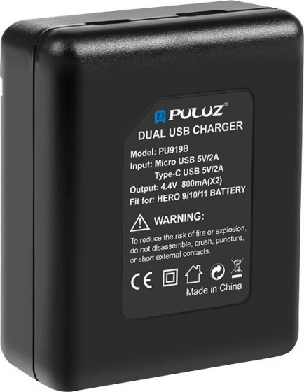 Datorită tensiunii de ieșire de 4.4V și curentului de ieșire de 800mA, încărcătorul Puluz încarcă eficient și sigur bateriile HERO 9, 10, 11 și 12.