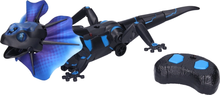 Șopârla cu guler cu telecomandă arată ca vie și se mișcă la fel. Datorită controlului cu infraroșu, se manevrează ușor acasă și în interior. Ef ectele luminoase și sonore realiste sporesc distracția și dezvoltă imaginația copiilor.