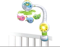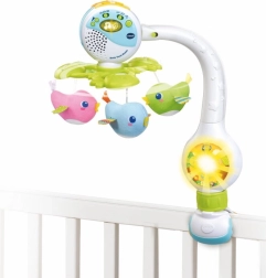 VTech carusel cântător 3‑în‑1 este un ajutor versatil pentru adormire liniștită și distracție în călătorii. Păsărelele colorate se rotesc delicat și, împreună cu muzica și luminița, creează o atmosferă calmă. Caruselul oferă melodii și cântece de leagăn în cehă și slovacă, care ajută bebelușul să adoarmă mai repede și să se simtă în siguranță.