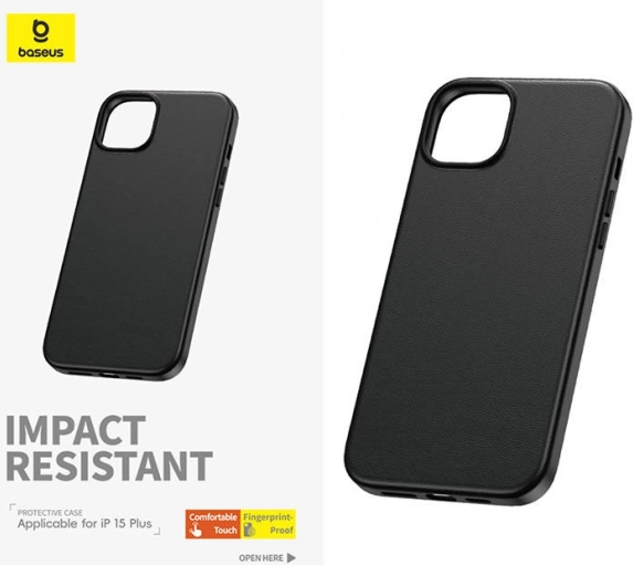 Această carcasă subțire și stilată Baseus din Seria Fauxther pentru iPhone 15 Plus, de culoare neagră, asigură o rezistență la cădere și protejează telefonul dumneavoastră împotriva deteriorării. Realizată din piele PU de calitate, care este rezistentă la pete.