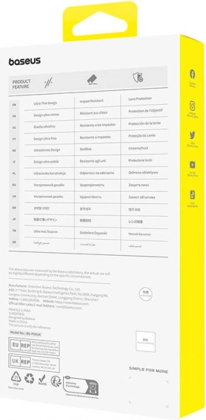- Tehnologie Baseus AirCare, margini ridicate (ecran +1 mm, cameră +0,6 mm)