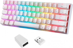 Motospeed SK62 White îmbină un layout minimalist cu 61 de taste și funcționalitate ridicată. Datorită conexiunii triple, comută ușor între până la trei dispozitive, iar iluminarea RGB color cu peste 10 efecte dinamice îți subliniază stilul. Switch-urile OUTEMU albastre, cu click clar, oferă feedback sigur la tastare și în jocuri.