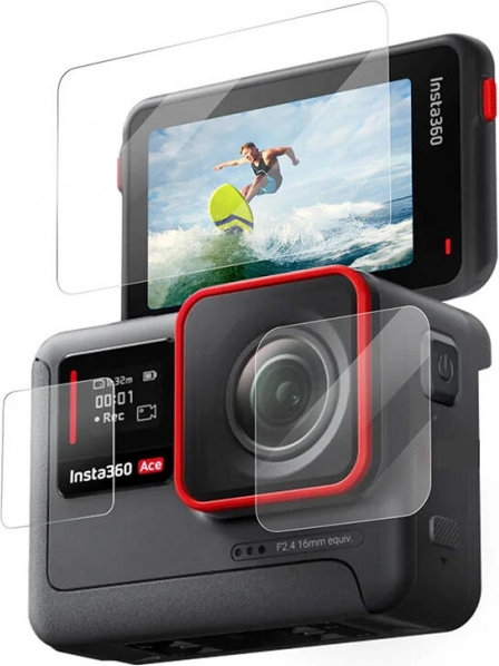 Protejați fiabila și fără compromisuri camera de acțiune INSTA360 Ace Pro / Ace. Setul TELESIN oferă sticlă călită 9H pentru ecranul principal și obiectiv, și capak laminat pentru al doilea ecran. Datorită transmisiei luminii de 99%, protecția nu afectează calitatea imaginii, iar potrivirea perfectă asigură o instalare ușoară și răspuns tactil impecabil.