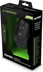 Mouse-ul de gaming elegant Esperanza pentru jucători oferă un senzor optic precis cu rezoluție de până la 2400 DPI, formă ergonomică pentru confort în sesiuni lungi și butoane laterale practice, inclusiv funcția rapidă Double Click. Construcția durabilă cu cablu ranforsat și iluminare RGB/LED cu model fulger completează perfect orice setup de gaming.