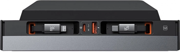 - Încărcare a 4 dispozitive simultan: 2× cablu retractabil USB‑C + USB‑C + USB‑A.