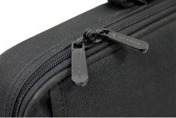 Panourile laterale întărite și stratul moale din spumă protejează dispozitivul împotriva șocurilor și zgârieturilor, iar cureaua de fixare menține laptopul bine stabilizat.