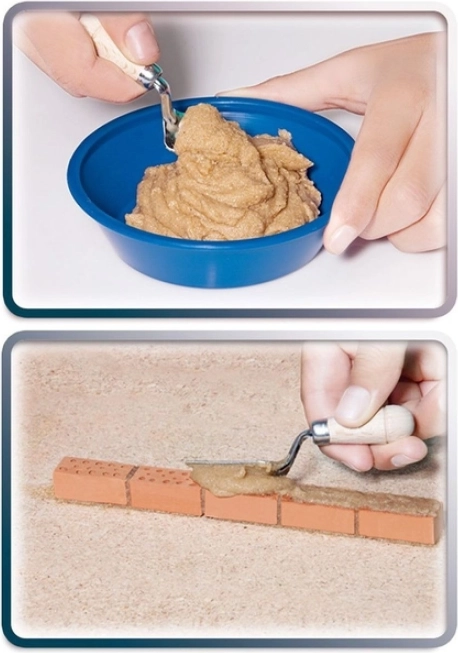Acest set unic permite construcția unei case sau a unui castel ca un adevărat constructor. Amestecați mortarul, uniți cărămizile și începeți lucrul. După ce ați terminat, puteți înmuia creația, o uscați și începeți să construiți din nou.