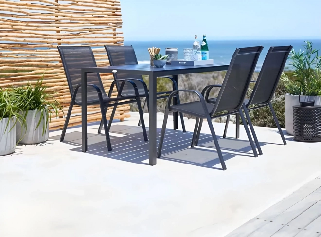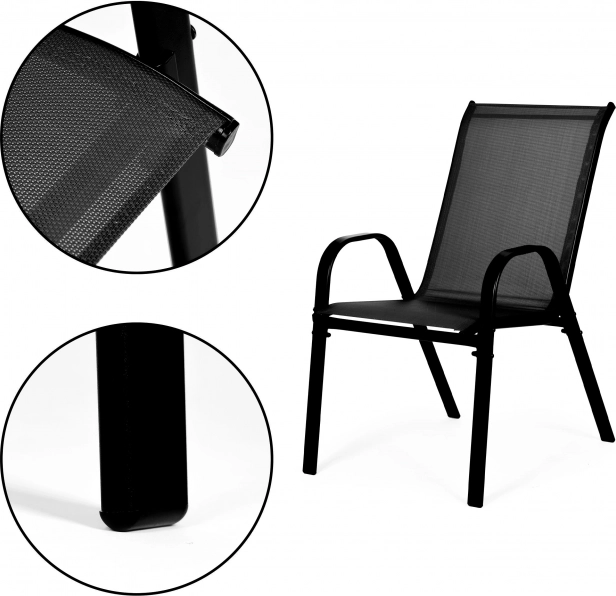Transformați-vă terasa sau balconul într-un spațiu de relaxare cu setul de 2 scaune de grădină negre de la ModernHome. Aceste scaune sunt perfecte pentru a completa atmosfera oricărei grădini sau mese de terasă, oferind confort și durabilitate datorită designului lor modern și materialelor de calitate.