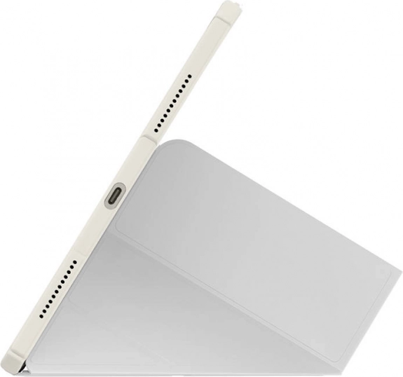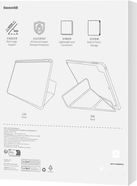 Partea frontală pliabilă integrată creează un suport stabil cu mai multe unghiuri pentru scris, desen și vizionare video. Clapeta magnetică susține funcția auto wake/sleep, economisind bateria – deschideți pentru trezire, închideți pentru hibernare. Suportul practic găzduiește Apple Pencil (generația 1 și 2) și stylus-urile BASEUS, iar orificiile de ventilație ajută la disiparea căldurii.