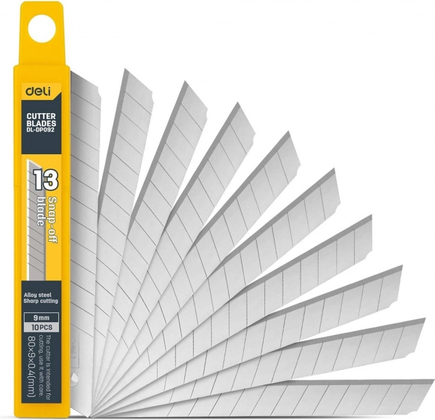 Acest cuțit universal de la brandul Deli Tools este destinat utilizării profesionale și casnice. Este echipat cu o lamă interschimbabilă cu lățimea de 9 mm, care asigură precizie la fiecare tăietură.