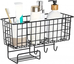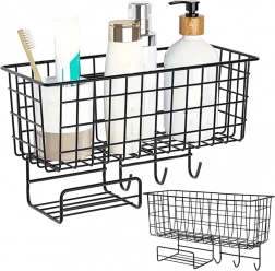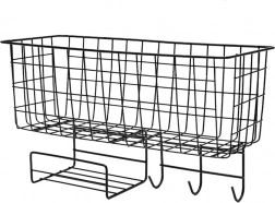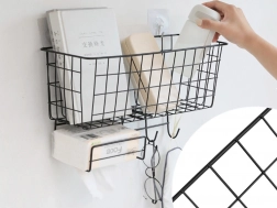 Organizatorul de perete este prevăzut cu o poliță spațioasă pentru depozitarea cărților, tabletelor, produselor cosmetice sau altor accesorii. În plus, include un spațiu pentru șervețele și trei cârlige rezistente care permit o mai bună organizare și menținerea ordinii.