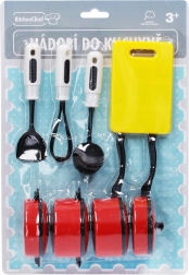 Acest set din plastic cu veselă pentru bucătăria copiilor oferă tot ce este necesar pentru micii bucătari începători. Două oale și două tigăi oferă spațiu pentru „gătit”, iar farfuria și ustensilele creează atmosfera unei adevărate experiențe culinare. Plasticul de calitate este ușor, ușor de întreținut și ideal pentru joaca de zi cu zi.