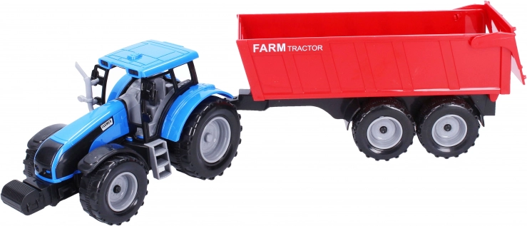 Tractor cu remorcă de 42 cm și propulsie pe principiul inerției. Două variante: albastru și roșu. Ideal pentru micii agricultori.