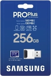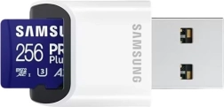 Căutați un card de memorie fiabil și rapid pentru smartphone, cameră de acțiune, dronă sau aparat foto? Samsung PRO Plus microSDXC cu capacitate de 256 GB oferă performanțe de vârf pentru filmare fluentă 4K, fotografiere în rafală rapidă și lansarea sprintenă a aplicațiilor. Datorită claselor U3, V30 și A2, face față sarcinilor solicitante și menține viteze de transfer stabile.