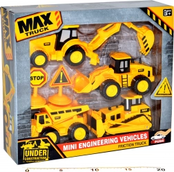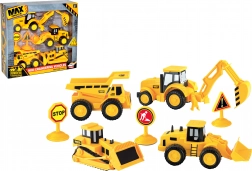 Set de mașini de construcție pentru micii entuziaști ai tehnologiei de construcție. Include patru mașini diverse, inclusiv buldozere și excavatoare, care extind posibilitățile de joc.