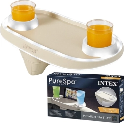 Bucură-te de și mai multă relaxare în jacuzzi cu etajera practică INTEX cu iluminare LED. Oferă compatibilitate universală cu toate SPA-urile INTEX, 2 suporturi sigure pentru băuturi și spațiu pentru tabletă sau telefon. Datorită iluminării LED discrete, creează o atmosferă plăcută pentru băile de seară.