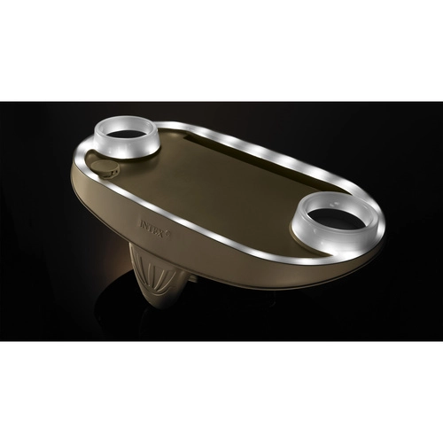 Etajera cu iluminare LED pentru SPA INTEX este un accesoriu inteligent care îți sporește confortul în timpul relaxării. Se fixează ușor pe marginea jacuzzi-ului și îți oferă imediat un loc stabil pentru băuturi și electronice. Lumina LED fină creează o atmosferă plăcută și face fiecare seară în jacuzzi mai agreabilă.
