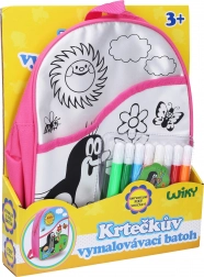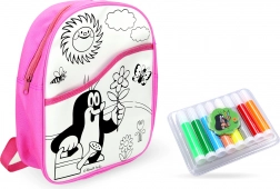Rucsac de colorat Roz cu Cârtița, 30 cm și 8 markere