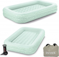 Salteaua gonflabilă Intex cu dimensiunile de 168x107x25 cm este excelentă pentru copii în călătorii - în hoteluri, campinguri etc. Este fabricată din PVC durabil și acoperită cu velur moale, rezistent la apă, de culoare verde plăcută, care se potrivește excelent în orice cameră. Ventilul Boston permite dezumflarea ușoară în doar un minut, după care salteaua poate fi pliată și depozitată.