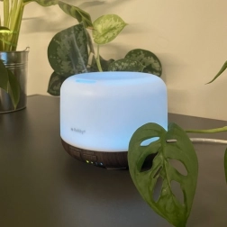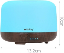 Creează acasă și la birou un mediu mai sănătos și mai plăcut. RUHHY răspândește o ceață rece fină pentru umiditate optimă și oferă în același timp efecte aromaterapeutice și de relaxare. Ionizarea integrată ajută la îmbunătățirea calității aerului, iar iluminarea LED ambientală, în mai multe culori, induce o stare de bine atât în timpul lucrului, cât și al relaxării.