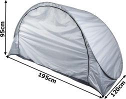 Cortul este ușor, simplu de transportat și, după pliere, ocupă foarte puțin spațiu. Construcția cu închidere și posibilitatea de ancorare cu țăruși sporesc stabilitatea și confortul. Dimensiunile de 195 × 120 × 95 cm sunt ideale pentru 1–2 persoane, fie la plajă, în grădină, la camping sau ca spațiu de joacă pentru copii.