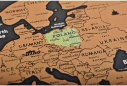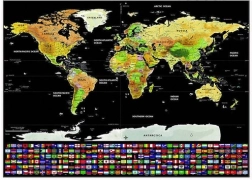 Harta răzuibilă permite marcatul țărilor vizitate și dezvăluie detalii geografice ascunse și steaguri sub strat.