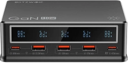 Încărcătorul de birou performant BlitzWolf, cu o putere totală de până la 110 W, poate alimenta simultan până la 5 dispozitive. Datorită suportului PD 3.0, QC 3.0, PPS și altor protocoale, oferă încărcare rapidă și sigură pentru telefoane, tablete și laptopuri. Designul compact, 3× USB‑A și 2× USB‑C, precum și distribuția inteligentă a puterii îl fac o soluție ideală pentru birou și acasă.
