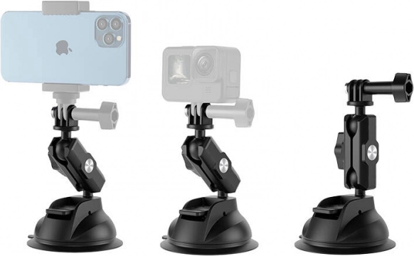 - Suport universal cu ventuză pentru telefon și cameră de acțiune