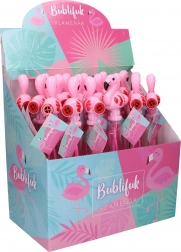 Bucurați-vă de distracție cu originalul apă de săpun 2în1 în formă de flamingo, care nu numai că face bule uimitoare, dar emite și sunete datorită fluierului.