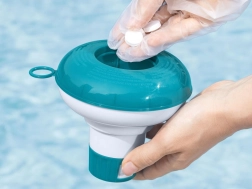 Dozatorul plutitor de clor Bestway asigură dozarea continuă a chimiei pentru piscină și menținerea apei cristaline pe tot parcursul sezonului. Este suficient să introduceți tablete de clor cu diametrul de până la 2,5 cm (nu sunt incluse în pachet), iar dozatorul le va dizolva în siguranță și uniform pe toată suprafața apei.