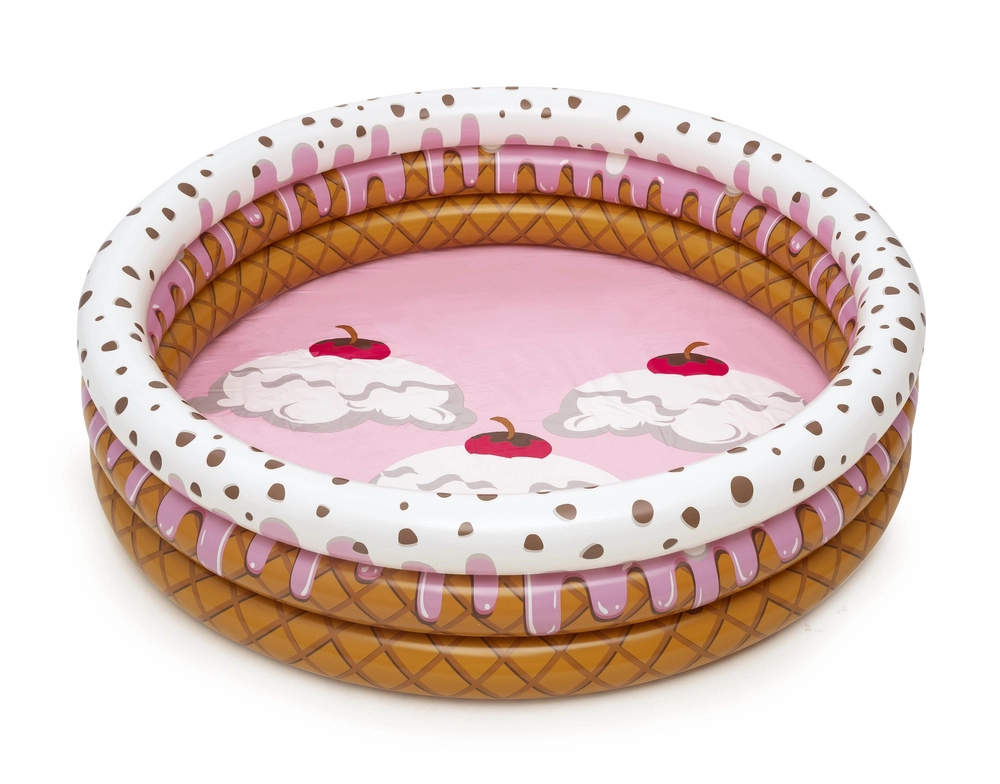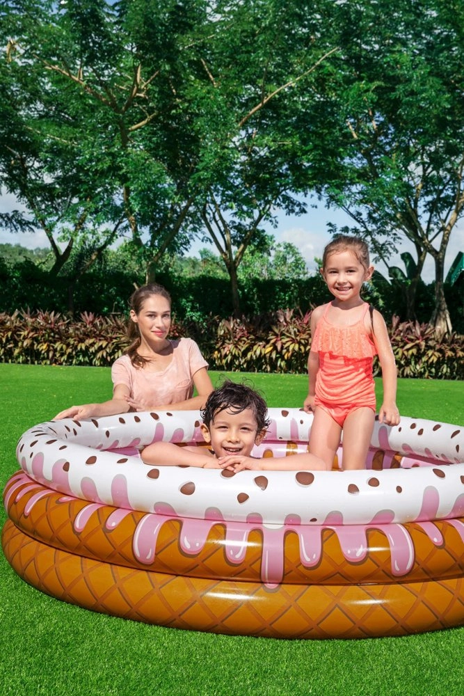 Piscina gonflabilă în formă de înghețată este alegerea ideală pentru grădină în zilele fierbinți de vară, când copiii au nevoie să se răcorească și să se joace în apă.