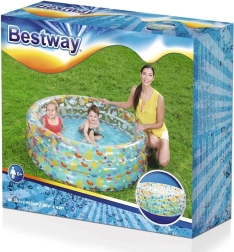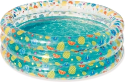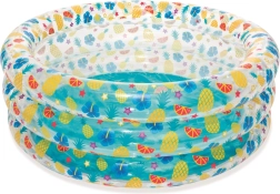 Această piscină stilată pentru copii, cu pereți transparenți și un motiv vesel cu fructe, aduce în grădina dumneavoastră o atmosferă tropicală. Pereții înalți și moi oferă sprijin plăcut și confort, iar construcția cu trei inele asigură stabilitate chiar și în timpul zbenguielii.