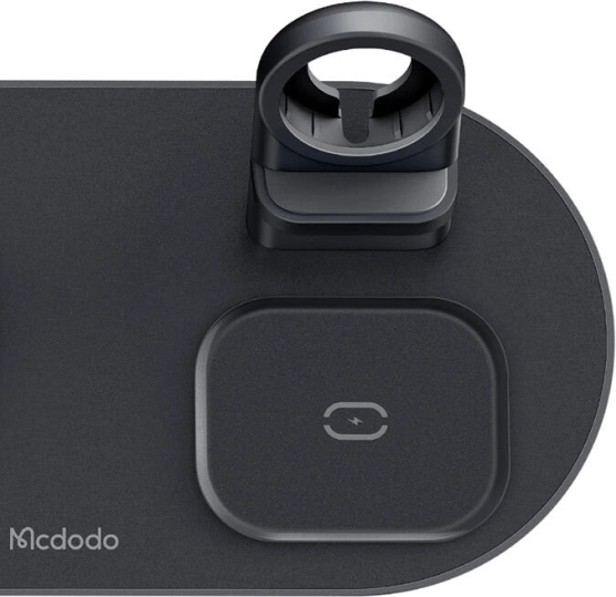 Fără ghemuri de cabluri. Stația wireless elegantă MCDODO 3 în 1 consolidează încărcarea telefonului, ceasului și căștilor într-un singur loc. Oferă suport MagSafe pentru iPhone și este compatibilă retroactiv cu standardele 10 W / 7,5 W / 5 W, asigurând alimentare rapidă și fiabilă pentru o gamă largă de dispozitive, inclusiv anumite telefoane Android.