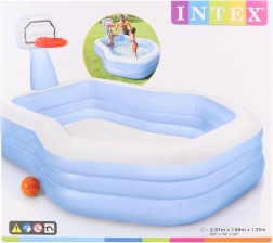 Centrul de joacă cu coș de baschet integrat și minge oferă o combinație excelentă de distracție acvatică și activitate fizică. Dimensiunile generoase de 257 × 188 × 130 cm și volumul de 682 l (la nivelul apei de 32 cm) asigură suficient spațiu pentru copii de la 3 ani.