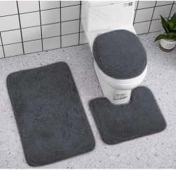 Setul conține un covoraș clasic dreptunghiular, un covoraș cu decupaj pentru toaletă și o husă pentru capacul toaletei, care completează aspectul băii tale.