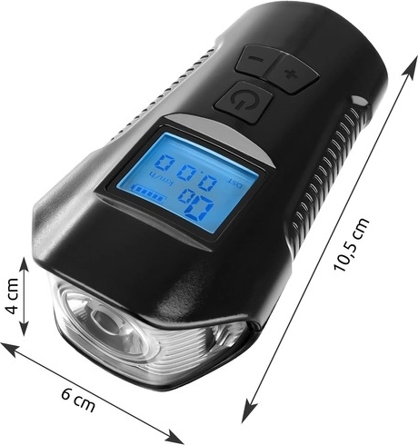 Lampa de ciclism include un vitezometru pentru monitorizarea distanței, vitezei și timpului.