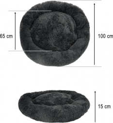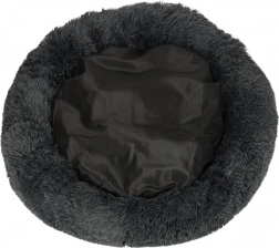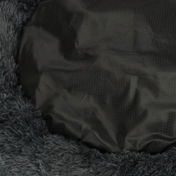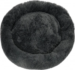 Acest culcuș foarte moale, gri închis, în formă de gogoașă, oferă câinilor și pisicilor un mediu călduros. Suprafața plăcută din pluș este delicată la atingere, iar umplutura confortabilă atenuează presiunea în timpul repausului. Marginea înălțată oferă sprijin pentru cap și gât și induce o senzație de siguranță, fiind ideal pentru animăluțele cărora le place să se ghemuiască.