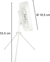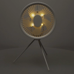 Include o telecomandă practică pentru pornire comodă, schimbarea vitezei și activarea iluminării LED delicate, de exemplu pentru lectură seara. Ventilatorul are dimensiuni compacte și un stativ tip trepied stabil, ocupă foarte puțin spațiu și stă ferm pe masă.