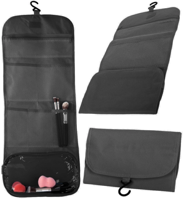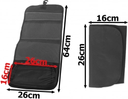 Geantă de toaletă practică, concepută pentru organizarea ușoară a nevoilor personale. Este suficient să o atârnați în baie și să aveți toate produsele cosmetice la îndemână, fără a pierde spațiu prețios. Ideală pentru călătorii, potrivită pentru bărbați și femei.