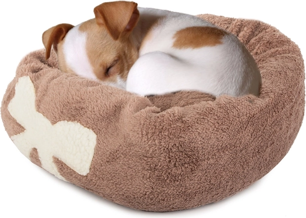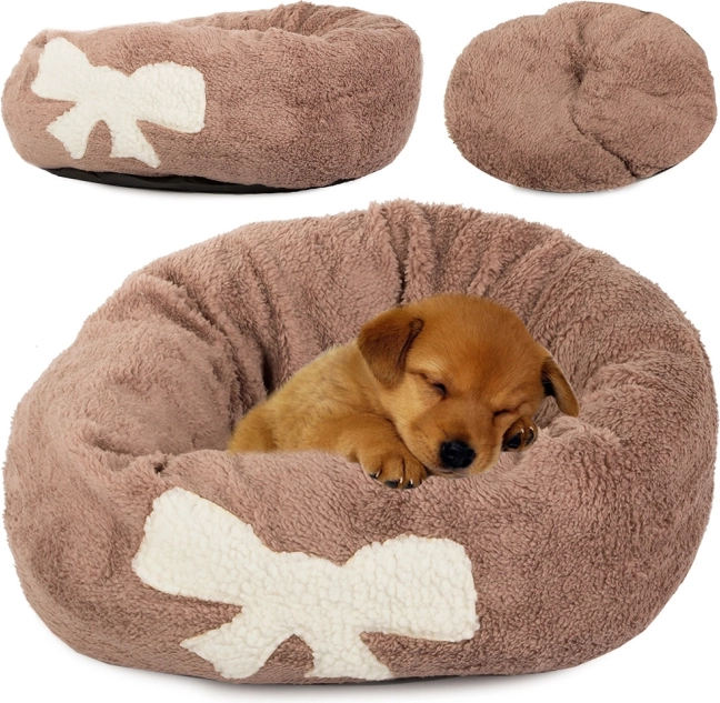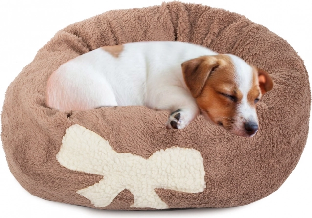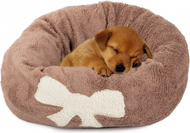 Cuib pufos din pluș pentru pisici și câini mici 50 cm – Maro