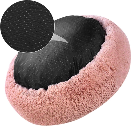 Oferă-i companionului tău confort maxim cu acest culcuș moale în formă de donut. Este realizat din pluș lung, fin, are margini înălțate pentru susținerea capului și gâtului și, datorită partei inferioare antiderapante și rezistente la apă, rămâne stabil pe loc. Ideal pentru un somn liniștit și un sentiment de siguranță, chiar și pentru câinii mai mari.