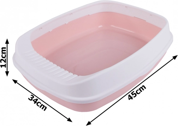 Toaletă pentru pisici practică și spațioasă, cu ramă și lopățică pentru întreținere ușoară. Datorită construcției deschise și marginilor înalte, reduce eficient mizeria din jur. Este fabricată din plastic rezistent, are suprafață netedă pentru curățare rapidă și, datorită dimensiunilor de 45 × 34 × 12 cm, este potrivită și pentru pisici mai mari.